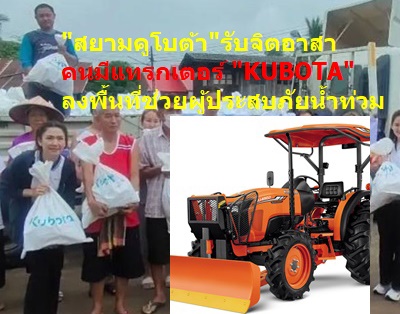 บริษัท สยามคูโบต้าคอร์เรชั่น จำกัด เปิดรับจิตอาสาที่มีแทรกเตอร์คูโบต้า เข้าพื้นที่ช่วยเหลือผู้ประสบภัยน้ำท่วม ในกิจกรรม “รวมพลังคนคูโบต้า ช่วยภัยน้ำท่วม” ในพื้นที่ อ.เมืองเชียงราย จ.เชียงราย พร้อมลงพื้นที่ ระหว่างวันที่16-18 กันยายน 2567 เพื่อเป็นยานพาหนะรับส่งพี่น้องประชาชน (มีสาลี่พ่วง) และเคลียร์เส้นทางดินโคลนในพื้นที่น้ำลด เน้นเฉพาะแทรกเตอร์คูโบต้ารุ่น L,M ขึ้นไป นัดรวมพลที่ ร้านคูโบต้าจุงชัย สำนักงานใหญ่ ถ.เชียงราย-เทิง ต.ท่าสาย อ.เมืองเชียงราย