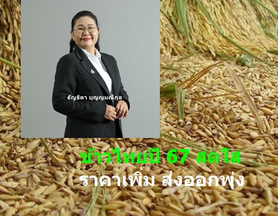 นางธัญธิตา บุญญมณีกุล รองเลขาธิการสำนักงานเศรษฐกิจการเกษตร (สศก.) กระทรวงเกษตรและสหกรณ์ เปิดเผยถึงสถานการณ์ราคาและการส่งออกข้าวของไทยในปีนี้ว่า มีทิศทางที่ดี ราคาข้าวเปลือกที่เกษตรกรขายได้มีการขยับตัวสูงขึ้นต่อเนื่อง รวมถึงการส่งออกข้าวเพิ่มขึ้นเช่นกัน ในช่วง 9 เดือน (มกราคม – กันยายน 2567) พบว่า ราคาข้าวเปลือกเจ้าหอมมะลิ เฉลี่ยตันละ 14,813 บาท สูงขึ้นจากช่วงเดียวกันของปี 2566 ร้อยละ 4.09 ข้าวเปลือกเจ้าพันธุ์ปทุมธานี 1 เฉลี่ยตันละ 12,486 บาท สูงขึ้นร้อยละ 7.35 ข้าวเปลือกเหนียว เฉลี่ยตันละ 12,038 บาท สูงขึ้นร้อยละ 2.98 และข้าวเปลือกเจ้าความชื้น 15% เฉลี่ยตันละ 10,908 บาท สูงขึ้นร้อยละ 3.87