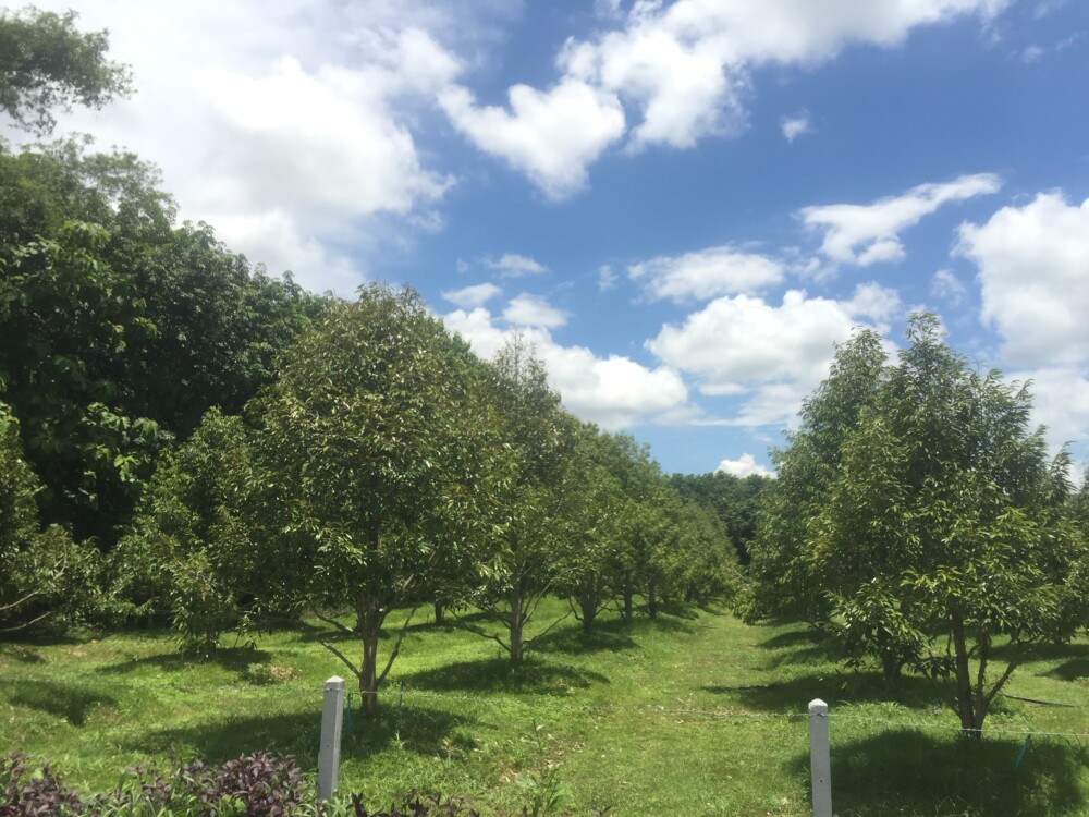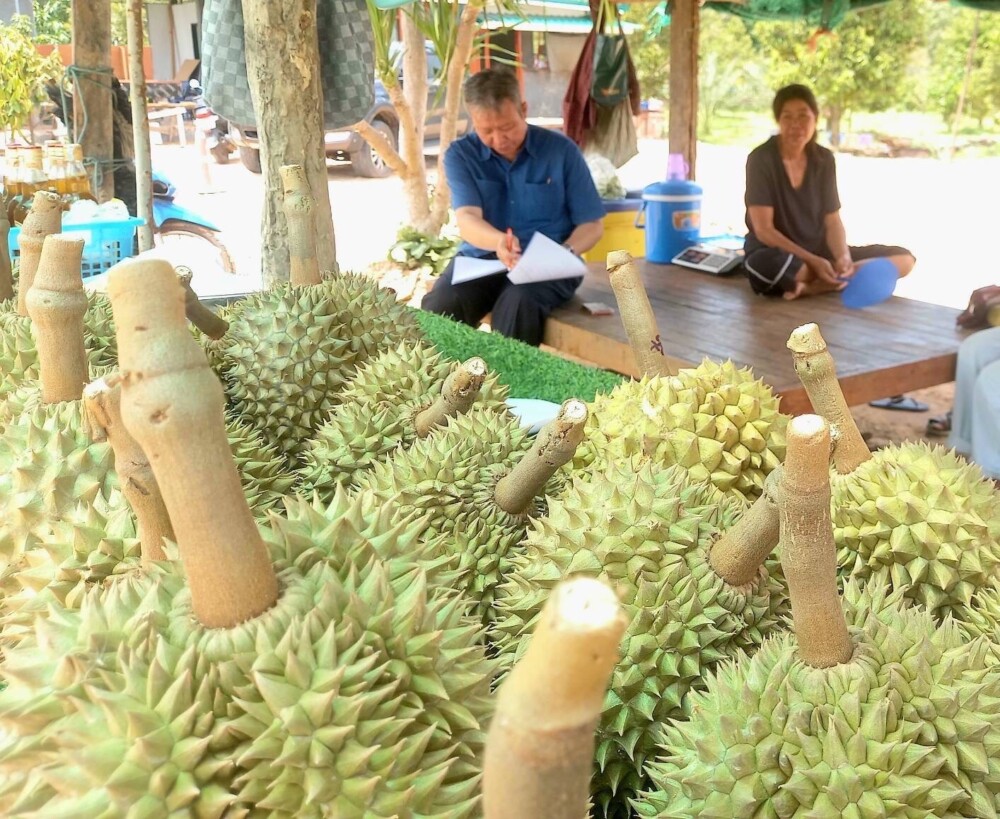 Due to the fertility of the soil, acidity, moisture, and water sources, it can help reduce production costs and produce good quality products. As for the price of durian that farmers can sell in July 2024, which is the period when the product is released to the market, the average price is 150 – 180 baht/kilogram. In terms of the market situation, most of the products, 90 percent, are sold directly to consumers by farmers. 5 percent of the products are purchased by traders at the orchard and collected for resale in the province. And the remaining 5 percent of the products are sold by farmers through their own online channels.