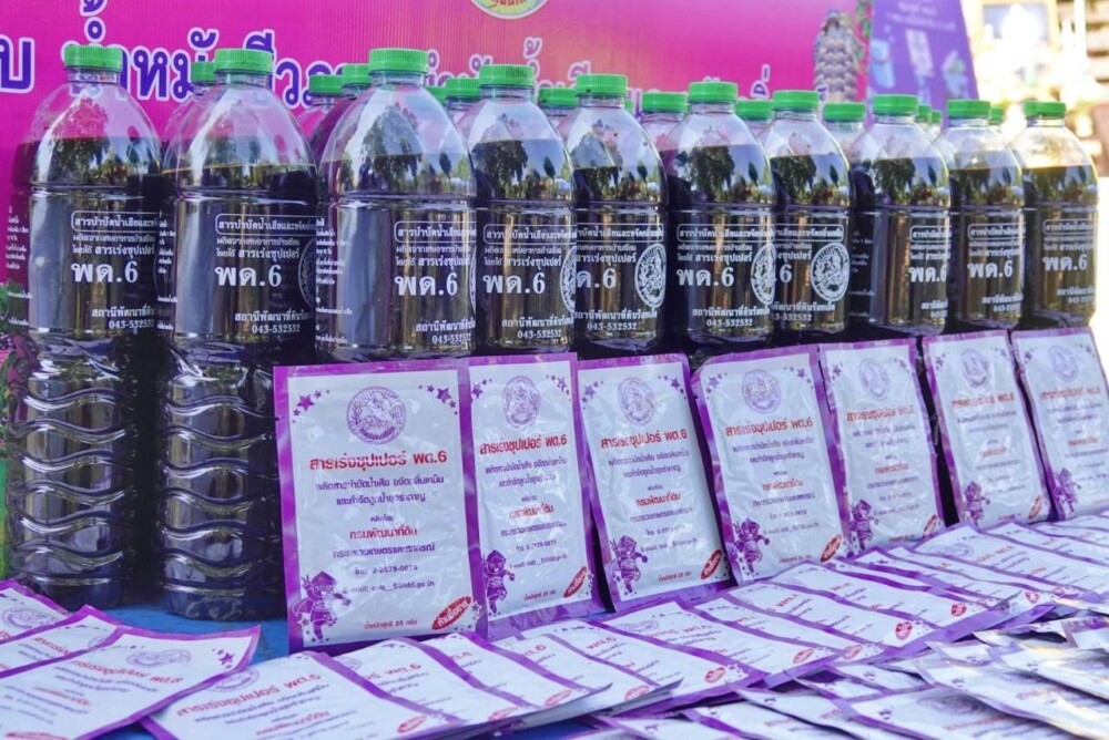 รวมทั้งการใช้ผลิตภัณฑ์เทคโนโลยีชีวภาพ สารเร่งซุปเปอร์ พด. ต่าง ๆ เพื่อบรรเทาความเดือดร้อนให้กับหมอดินอาสา เกษตรกรผู้ประสบอุทกภัย สำหรับพื้นที่ลุ่มที่เป็นนาข้าว เกษตรกรควรรีบทำการระบายน้ำออกโดยเร็วที่สุด ปล่อยให้ดินแห้งเพื่อไม่ให้ต้นข้าวเน่าตาย ให้ใช้น้ำหมักชีวภาพ จากสารเร่งซุปเปอร์ พด. 2 อัตรา 5 ลิตร/ไร่ ใส่ในนาข้าวเพื่อช่วยเร่งการเจริญเติบโต ในกรณีพื้นที่น้ำท่วมขังแปลงนาจนต้นข้าวเน่าตาย หรือบ้านเรือนชุมชนที่อยู่อาศัยในพื้นที่เขตเมืองมีน้ำนิ่งท่วมขัง อาจทำให้น้ำเน่าเสีย เกิดลูกน้ำและยุงรำคาญ ส่งผลเสียต่อสุขภาพอนามัยประชาชน