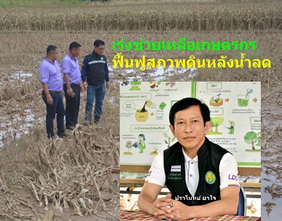 นายปราโมทย์ ยาใจ อธิบดีกรมพัฒนาที่ดิน เปิดเผยว่า จากการเกิดอุทกภัยครอบคลุมพื้นที่หลายจังหวัดในภาคเหนือตอนบน และภาคตะวันออกเฉียงเหนือ กรมพัฒนาที่ดิน ได้เร่งให้ความช่วยเหลือ โดยกำหนดแนวทางการแก้ไขปัญหาสถานการณ์อุทกภัยในพื้นที่การเกษตรที่ได้รับความเสียหายเพื่อฟื้นฟูดินและช่วยเหลือเกษตรกรที่ได้รับความผลกระทบดังนี้ ในสถานการณ์ประสบอุทกภัย ให้สำนักงานพัฒนาที่ดินเขตและสถานีพัฒนาที่ดินจังหวัดประเมินสถานการณ์ จัดชุดเฉพาะกิจลงพื้นที่ประสบอุทกภัยให้ความช่วยเหลือเบื้องต้น และให้คำแนะนำเกี่ยวกับการดูแลจัดการดิน พืช และน้ำ ภายหลังน้ำลดให้เหมาะสมตามสภาพพื้นที่และชนิดพืช