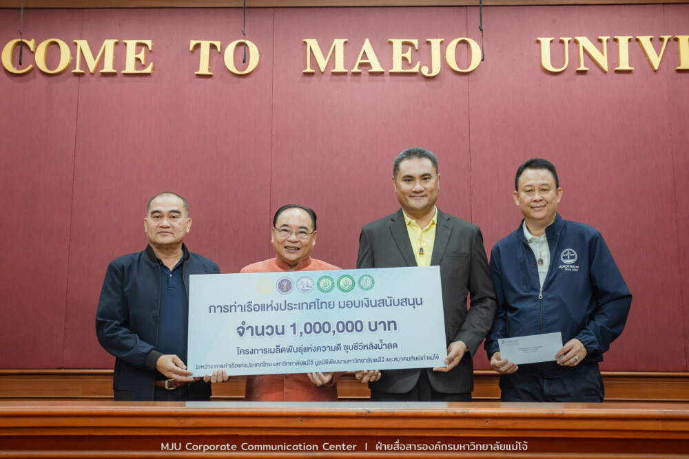 รศ. ดร.วีระพล ทองมา อธิการบดีมหาวิทยาลัยแม่โจ้ รับมอบเงินสนับสนุนโครงการเมล็ดพันธุ์แห่งความดี ชุบชีวีหลังน้ำลด จากการท่าเรือแห่งประเทศไทย จำนวน 1,000,000 บาท โดยมี นายดรุฒ คำวิชิตธนาภา กรรมการการท่าเรือแห่งประเทศไทย (ศิษย์เก่าแม่โจ้ รุ่น 63) เป็นผู้แทนมอบ และ บริษัท วิทยุการบินแห่งประเทศไทย จำกัด โดยมี นายวิทย์วศิน เรียนวัฒนา ผู้อำนวยการใหญ่(บริการเดินอากาศส่วนภูมิภาค) เป็นผู้แทนมอบ ณ ห้องประชุมกรรมการสภามหาวิทยาลัย ชั้น 5 มหาวิทยาลัยแม่โจ้ จ.เชียงใหม่ เมื่อวันที่ 26 กันยายน 2567 ที่ผ่านมา