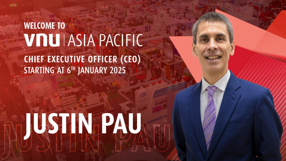 VNU Asia Pacific (VNU AP) ผู้นำด้านการจัดนิทรรศการและการประชุมทางการค้าแบบ B2B มีความยินดีที่จะประกาศแต่งตั้งนาย Justin Pau ดำรงตำแหน่งประธานเจ้าหน้าที่บริหาร (CEO) คนใหม่ โดยจะมีผลตั้งแต่เดือนมกราคม 2025