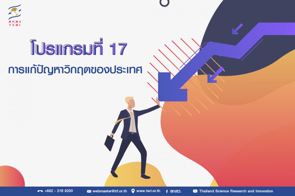 ทั้งนี้ โปรแกรมที่ 17 การแก้ปัญหาวิกฤตของประเทศ สนับสนุนการจัดการทั้งในภาวะวิกฤตและการฟื้นตัวหลังภาวะวิกฤต โดยมีเป้าหมายสำคัญในการสร้าง 1) ชุดความรู้สาธารณะเกี่ยวกับปัญหาและการจัดการเมื่อประสบภัยพิบัติอย่างเป็นระบบ ที่ถูกปลูกฝังอยู่ในหน่วยงานที่เกี่ยวข้อง และประชาชน 2) ฐานข้อมูลและศูนย์ข้อมูลเพื่อการจัดการภาวะวิกฤตและหลังภาวะวิกฤต 3) นโยบายและนวัตกรรมเพื่อการจัดการภัยพิบัติที่เป็นผลงานจาก ววน. อย่างน้อย 50 ชิ้น/เรื่อง ในช่วง 2 ปี (2563 – 2564) ที่ต้องถูกนำไปใช้ประโยชน์และต่อยอดอย่างเป็นรูปธรรมไม่ขึ้นหิ้ง