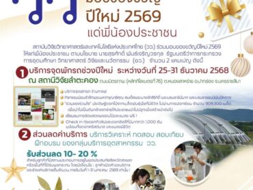 วว. มอบของขวัญปีใหม่ 2569 บริการจุดพักรถช่วงปีใหม่ ณ สถานีวิจัยลำตะคอง ลดค่าบริการ วิเคราะห์ฯ ธันวาคม 23, 2025ธันวาคม 23, 2025kasettumสถานีข่าววันนี้, สีสันโลกเกษตรของขวัญปีใหม่, ทดสอบ, บริการวิเคราะห์, ประชาชน, ฝึกอบรม, ลดค่าบริการ, วว., วว.มอบของขวัญปีใหม่, สถานีวิจัยลำตะคอง, สอบเทียบ, เกษตรทำกิน