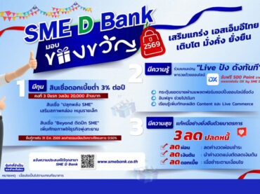 SME D Bank จัดใหญ่มอบแพ็กเกจของขวัญปีใหม่เพื่อเอสเอ็มอีไทย เติมทุนสินเชื่อดอกเบี้ยต่ำ 3% ช่วยเสริมสภาพคล่อง ต่อยอดเพิ่มรายได้ด้วยออนไลน์ ธันวาคม 29, 2025ธันวาคม 29, 2025kasettumสถานีข่าววันนี้, อาชีพ-เอสเอ็มอีSME D Bank, ของขวัญปีใหม่, จัดใหญ่, ต่อยอด, มอบแพ็กเกจ, เกษตรทำกิน, เติมทุนสินเชื่อดอกเบี้ยต่ำ 3%, เพิ่มรายได้ด้วยออนไลน์, เสริมสภาพคล่อง, เอสเอ็มอีไทย