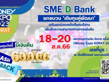 SME D Bank ร่วมงาน Money Expo KORAT 2023 หนุน SMEs แดนอีสาน จัดหนักบริการ ‘เติมทุนคู่พัฒนา’ แถมโปร Cash Back สูงสุด 6 หมื่นบาท