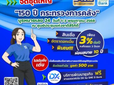 SME D Bank จัดชุดใหญ่ในงาน “150 ปี กระทรวงการคลัง” โปรโมชันสินเชื่อพิเศษดอกเบี้ยเพียง 3% ต่อปี ยื่นกู้ได้ทันที