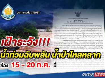 สทนช.ประกาศเตือนพื้นที่เสี่ยงต้องเฝ้าระวังน้ำท่วมฉับพลัน น้ำป่าไหลหลาก 15-20 ก.ค.67 นี้