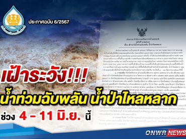ประกาศ สทนช.ให้เฝ้าระวังน้ำท่วมฉับพลัน น้ำป่าไหลหลาก 4 ภาค 4-11 มิ.ย.นี้
