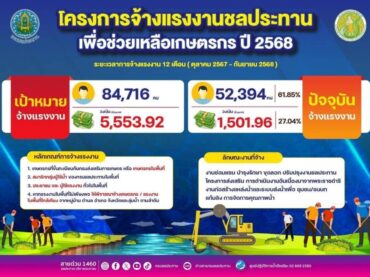 แรงงานภาคเกษตรแห่สมัครรับจ้างงานชลประทานปี 68 ยอดทะลุกว่า 5 หมื่นคนแล้ว