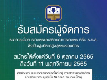 นายฉัตรชัย ศิริไล ผู้จัดการธนาคารเพื่อการเกษตรและสหกรณ์ […]