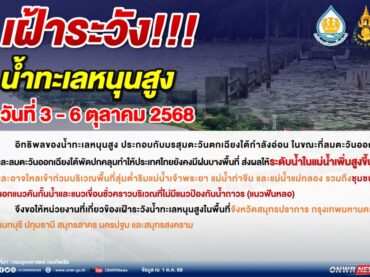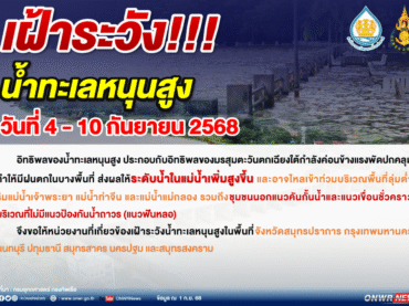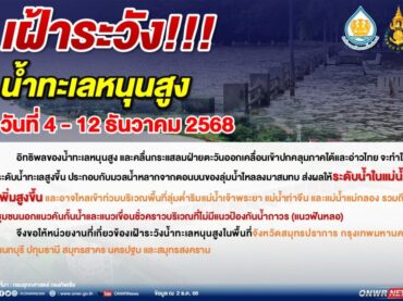 สทนช.ออก ฉบับที่ 32/2568 ให้เฝ้าระวังน้ำทะเลหนุนสูงอาจถึง 3 เมตร ช่วงวันที่ 4-12 ธ.ค.นี้