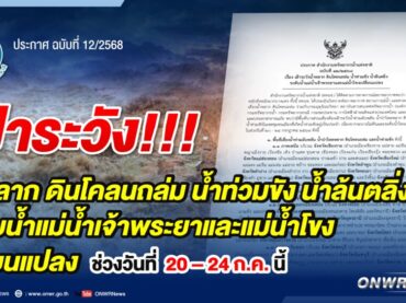 สทนช. เตรียมรับมือพายุ “วิภา” หวั่นน้ำหลากในลุ่มน้ำเจ้าพระยาช่วงเดือน ส.ค. – ต.ค. 68