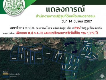 รายงานข่าวจากสำนักงานการปฏิรูปที่ดินเพื่อเกษตรกรรม (ส.ป […]