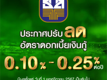ธ.ก.ส. ประกาศปรับลดอัตราดอกเบี้ยเงินกู้ MRR และ MOR ลงส […]