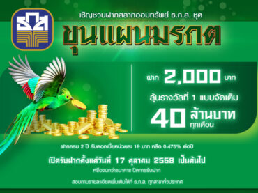 สลากออมทรัพย์ ธ.ก.ส. ชุด ขุนแผนมรกต ฝาก 2,000 บาท ครบ 2 […]
