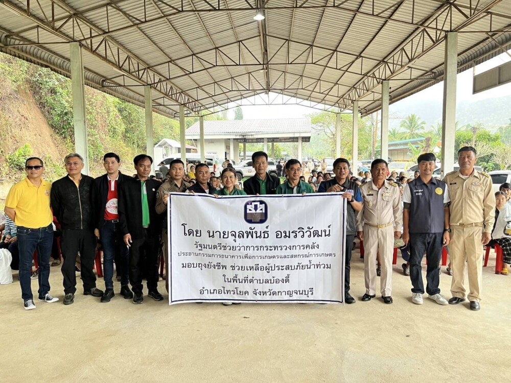 วันที่ 24 กุมภาพันธ์ 2568 ธนาคารเพื่อการเกษตรและสหกรณ์การเกษตร (ธ.ก.ส.) นำโดยนายสุพร บุญสิริชูโต รองผู้อำนวยการฝ่ายกิจการสาขาภาคตะวันตก และนางวิภารัตน์ สัมนักษร ผู้อำนวยการ ธ.ก.ส. จังหวัดกาญจนบุรี ร่วมจัดและส่งมอบถุงยังชีพ พร้อมสิ่งของจำเป็นให้กับผู้ประสบอุทกภัย อันเนื่องจากฝนตกหนักและน้ำป่าทะลักเข้าท่วมพื้นที่ ณ ตำบลบ้องตี้ อำเภอไทรโยคงหวัดกาญจนบุรีเพื่อบรรเทาความเดือดร้อนในเบื้องต้น