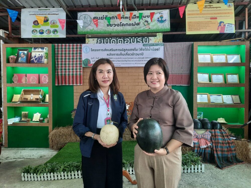 โดยส่งเสริมให้เกษตรกรทำนาข้าวเปลี่ยนมาปลูกแตงโมที่ใช้น้ำน้อยทดแทนการปลูกข้าวหลังเก็บเกี่ยวข้าวนาปี ซึ่งเป็นช่วงหน้าแล้งมีปริมาณน้ำน้อย อีกทั้งยังเป็นการเพิ่มรายได้ให้กับเกษตรกร ลดความเสี่ยงราคาผลผลิตตกตํ๋า และลดปัญหามลภาวะ PM 2.5 จากการเผาตอซังข้าว และยังสามารถนําความรู้ที่ได้รับไปปรับใช้ให้เกิดประโยชน์อีกมากมาย