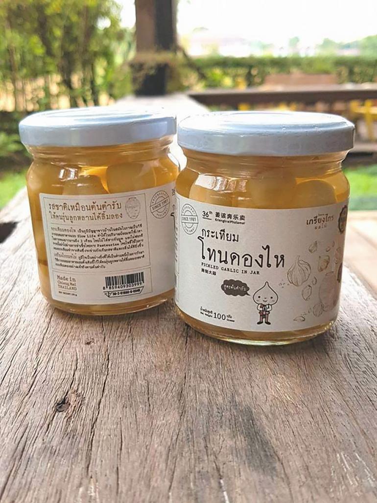 “ผลิตภัณฑ์ที่เป็นไฮไลต์ของเราจะเป็นกระเทียมดอง ซึ่งเชียงใหม่จะมีชื่อเสียงในเรื่องกระเทียมอยู่แล้ว ซึ่งก็จะนำมาแปรรูปทั้งเป็นกระเทียมโทนดอง 3 รส กระเทียมโทนดองน้ำผึ้ง และที่อยากแนะนำคือ กระเทียมโทนดองไห ที่จะให้รสชาติแบบต้นตำรับกระเทียมจริงๆ นอกจากนี้ยังมีท้อดอง มะนาวดองเปรี้ยวเค็ม รวมถึงกลุ่มผลไม้แปรรูปด้วย มะม่วงแช่อิ่ม มะม่วงอบแห้ง ลำไยอบแห้ง ลูกท้ออบน้ำผึ้ง บ๊วยเค็ม บ๊วยซากุระ ไว้ให้ได้ลิ้มลองรสชาติด้วย”