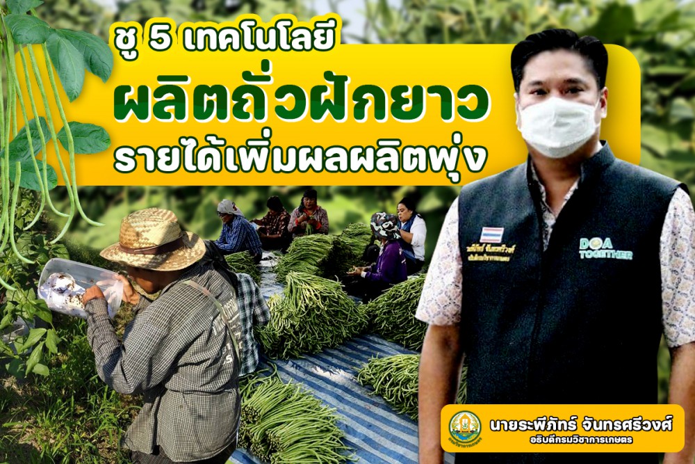 กรมวิชาการเกษตร ส่ง 5 เทคโนโลยีช่วยลดต้นทุน เพิ่มผลผลิตถั่วฝักยาวให้ชาวพิจิตร พบว่าสามารถสร้างรายได้เพิ่มเกินคาด ผลผลิตเพิ่มเกือบเท่าตัวจากเดิมผลิตได้ 2,000 กิโลกรัม/ไร่ หลังใช้เทคโนโลยีสูงขึ้นถึง 3,850 กิโลกรัมต่อไร่ เกษตรกรวางแผนเตรียมเพิ่มมูลค่าผลผลิตยกระดับเข้ามาตรฐาน GAP
