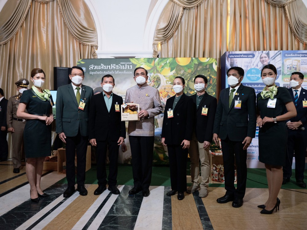 พลเอกประยุทธ์ จันทร์โอชา นายกรัฐมนตรี และคณะรัฐมนตรี เยี่ยมชมบูธและแลกเปลี่ยนความคิดเห็นกับนายณัฐพจน์ เชษฐาวัฒนานุกูล เจ้าของสวนส้มปรีชาฝางที่ดำเนินธุรกิจสวนส้มสายน้ำผึ้งด้วยความมุ่งมั่น และตั้งใจมากว่า 35 ปี มีการวิจัยและพัฒนาด้านนวัตกรรมและเทคโนโลยีมาใช้ในกระบวนการผลิต เพื่อให้ได้ส้มที่มีคุณภาพดีและรสชาติเป็นเอกลักษณ์ ตั้งแต่ขั้นตอนการปลูกที่ไม่ใช้สารเคมี แต่ใช้เชื้อจุลินทรีย์และสารสกัดจากพืชมากำจัดและควบคุมศัตรูส้มแบบชีววิธี (Biological Controls) สามารถแก้ไขปัญหาสารเคมีตกค้างในผลส้มและดินที่ปลูก มีการนำวัตถุดิบเหลือใช้จากผลส้ม เช่น เปลือก เมล็ดมาแปรรูปและต่อยอดไปสู่ผลิตภัณฑ์ที่หลากหลาย ซึ่งถือเป็นแบบอย่างในการพัฒนาที่ยั่งยืน ภายใต้หลัก BCG Economy Model โดยมีนายอาคม เติมพิทยาไพสิฐ รัฐมนตรีว่าการกระทรวงการคลัง ในฐานะประธานกรรมการ ธ.ก.ส และนายธนารัตน์ งามวลัยรัตน์ ผู้จัดการ ธ.ก.ส. ร่วมให้ข้อมูล ณ ตึกสันติไมตรี ทำเนียบรัฐบาล เมื่อวันที่ 24 มกราคม 2566